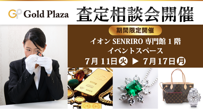 人材を活用したセールスプロモーション、人材派遣事業を行なう株式会社マーキュリー (本社:東京都新宿区西新宿1-26-2新宿野村ビル23階、代表取締役:林 正和)が展開するゴールドプラザでは貴金属・ブランド品・ 宝石を業界最高水準の安心買取りで累計56万人のお客様にご利用いただいております。店舗での買取をはじめLINE査定、宅配買取など、各種お客様に合わせたお買取り方法にも対応しており、また情勢の動きなども敏感に察知し情報を発信しております。そんなゴールドプラザでは7月11日(火)より大阪府豊中市新千里東町にて無料査定会を実施します。
