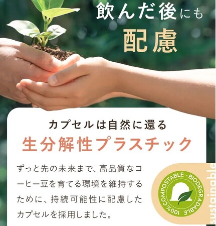 持続可能性へ配慮できるよう、カプセルは生分解性カプセルを使用しています。