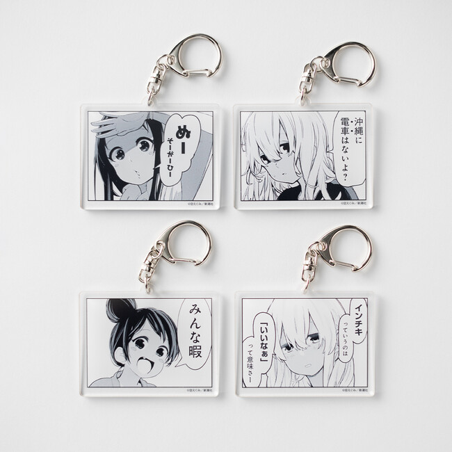 新潮社のwebマンガサイト「くらげバンチ」にて好評連載中の『沖縄で好きになった子が方言すぎてツラすぎる』(著:空えぐみ)から、作中の衝撃的なコマを使用したアクリルキーホルダーが登場します。コミックス最新7巻と同日発売です。