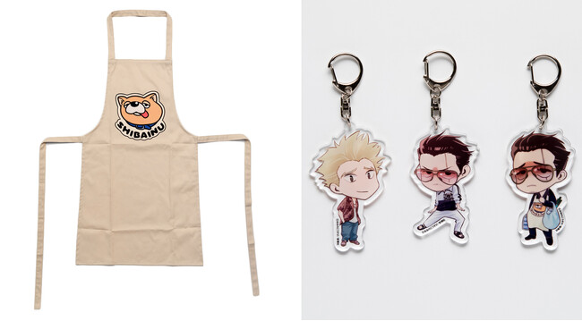 その他、龍のトレードマーク「SHIBAINUエプロン」や、おおのこうすけ先生描き下ろしイラストを使用したアクリルキーホルダーも好評販売中です。