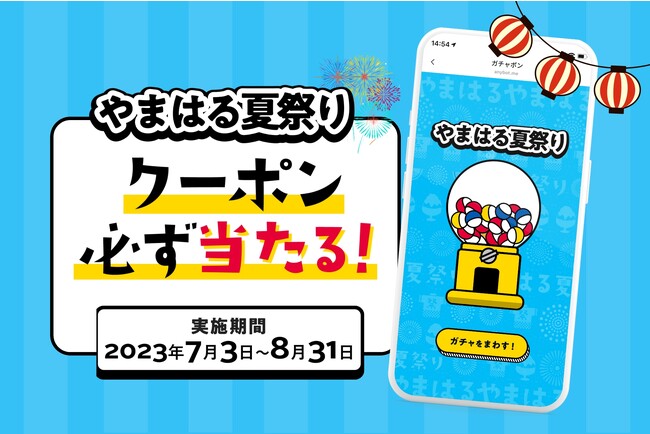 プロジェクト第5弾として、7月3日から「やまはる夏祭り」がスタート!LINEでお友達登録してガチャを回せばもれなくお得なクーポンが当たります。