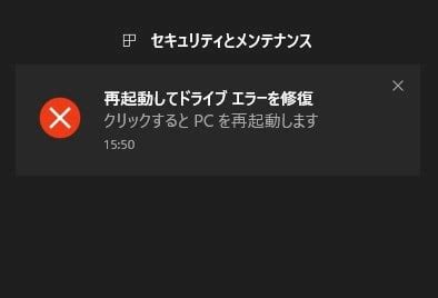 「再起動してドライブエラーを修復」エラーメッセージについて