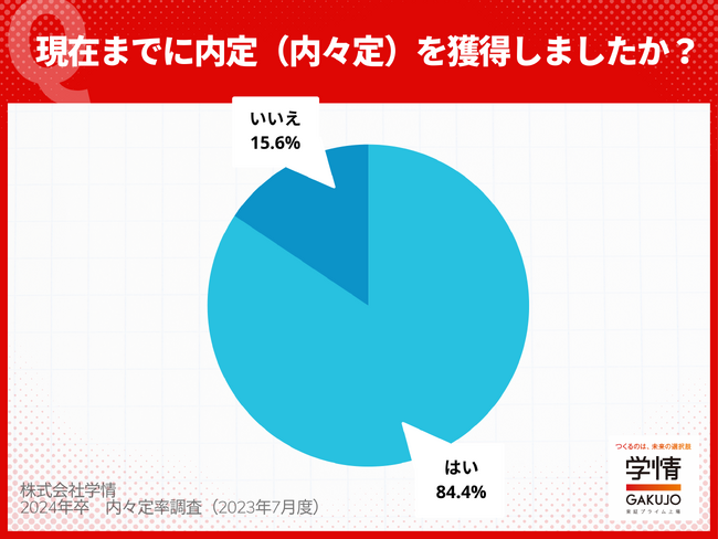 (1)6月末時点の内々定率は84.4%。22年卒以降で最も高い数値に