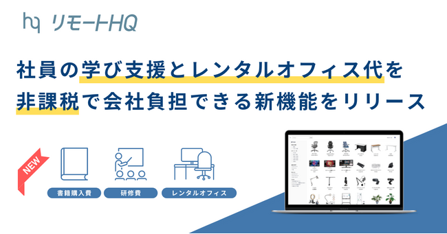 株式会社HQ(本社:東京都新宿区、代表取締役:坂本祥二)が提供する、最高の生産性をつくるリモートワーク支援プラットフォーム「リモートHQ」は、2023年8月に「学びサポート(書籍購入費や研修参加費用)」「レンタルオフィス」を非課税で会社支援できる新機能をリリースすることをお知らせします。