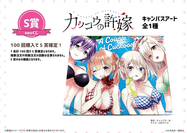 『カッコウの許嫁』の「eeoくじ」で一番レアなS賞はキャンバスアート! キャンバスアートは3号Fサイズ(約27cm×22cm)で、本物のキャンバス生地を使用したグッズです!!