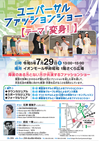 山梨県では、障害の有無にかかわらず誰もが共にファッションを楽しむ姿を通して、共生社会の実現に向けた実感・共感を広げることを目的として、下記のとおり障害のある方とない方が共演するファッションショーを開催します。