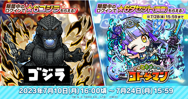 株式会社MIXI(東京都渋谷区、代表取締役社長CEO:木村 弘毅)は、スマホアプリの「ことば」で闘う新感覚RPG「共闘ことばRPG コトダマン」(以下コトダマン)において、ゴジラとの初コラボを7月10日(月)より開催します。