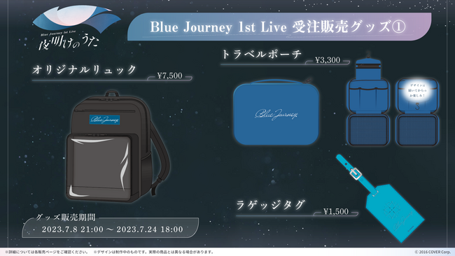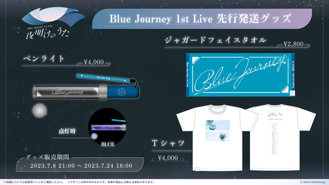 本公演開催に合わせ、本日7月8日(土)よりBlue Journey 1st Live「夜明けのうた」ライブグッズヴィジュアルが解禁されました。