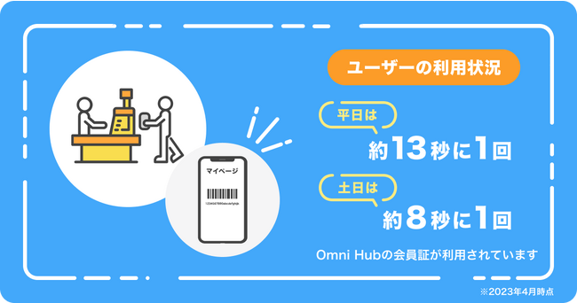 平日は約13秒に1回、土日は約8秒に1回、Omni Hubの会員証が利用されており、より良い購買体験の提供に貢献しています。