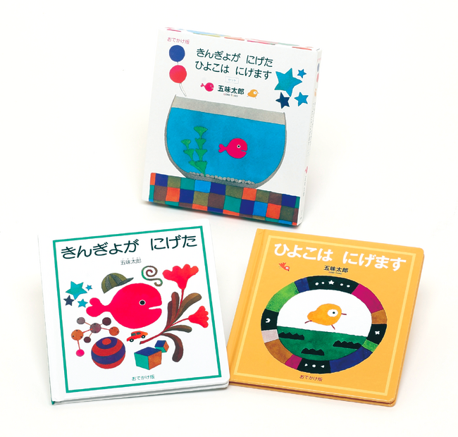 株式会社福音館書店 (代表取締役社長:佐藤潤一) は、絵本作家・五味太郎さんのデビュー50周年を記念して、五味さんの代表作が小さくてかわいい手のひらサイズになった『おでかけ版 きんぎょが にげた』と『おでかけ版 ひよこは にげます』、2冊がセットになった『おでかけ版 きんぎょが にげた ひよこは にげます セット』を期間限定で発売します。