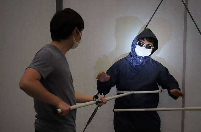 我々は「もし相手に奪われてしまった場合でも危険性が少ない方法」で相手をひるませる、を前提に開発を進めました。ハイビームさすまたは、「攻撃」ではなく「防御」に特化したさすまたです。
