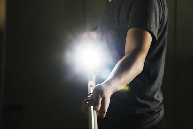 強力ライトで相手をひるませ、さすまたによる押さえつけをアシスト。使用者の姿を確認しづらくし、相手をかく乱します。