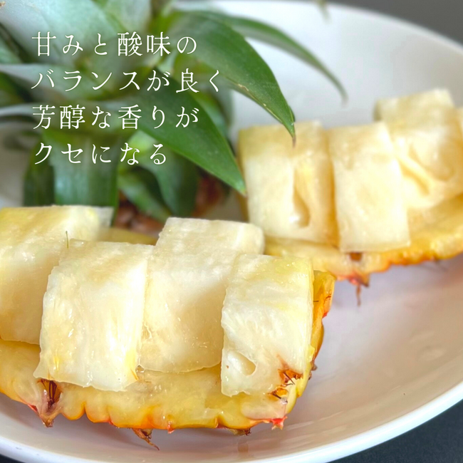 現在市場に出回っている外国産パイナップルとは異なり、西表島の自然豊かな土壌で育てられたパイナップルは、甘味と酸味のバランスがよく、お子様からご年配の方まで美味しく召し上がっていただけます。
