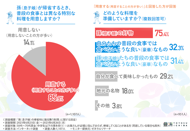 今回の調査で、孫(息子娘)が帰省する際に、いつもとは違う豪華な料理を用意する方が非常に多いことがわかりました。