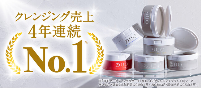 プレミアアンチエイジング株式会社(本社:東京都港区、代表取締役社長:松浦 清)は、2010年に発売したエイジングスキンケアブランドDUO(デュオ)の「ザ クレンジングバーム」シリーズが、4年連続クレンジング売上No.1を獲得したことをお知らせいたします。