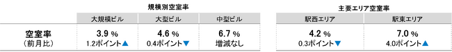 全規模ビル 主要エリア 空室率:「駅東」2018年9月以来の7%台へ上昇