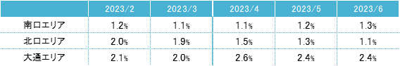 全規模ビル 主要エリア 空室率:「北口」4ヵ月連続で低下