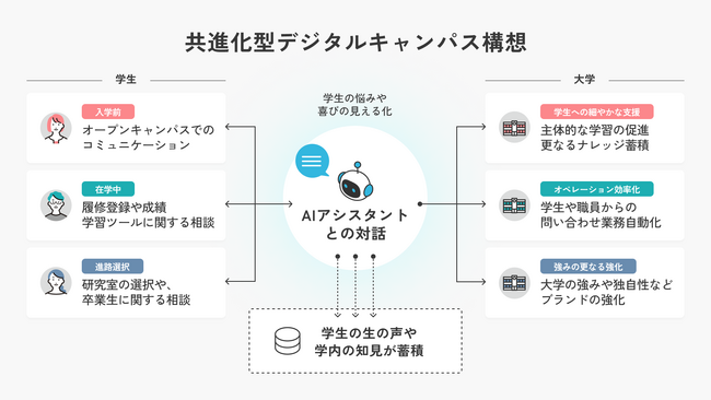 大学間連携で学生の困りごとを解決するコミュニケーション基盤や、キャリア・学びの相談にのるAIアシスタント等を開発、アフターコロナにおける大学×デジタルを多角的に支援