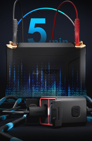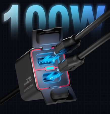 バイクの蓄電池が十分でない場合でも、USB Type-Cポートを介してモバイルバッテリーやACアダプターに接続することで、最大100Wの高速充電が可能です。わずか5~10分で必要な電力を補充することができます!