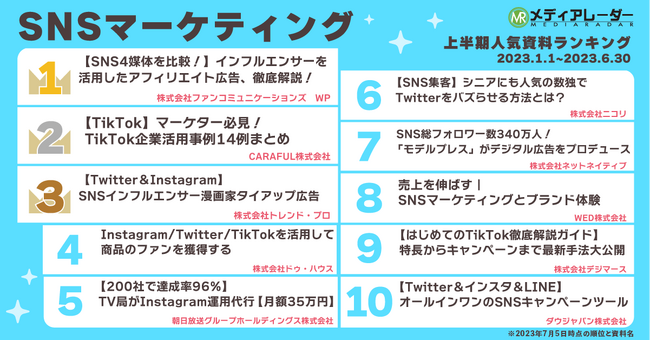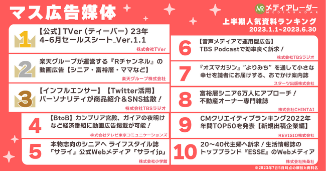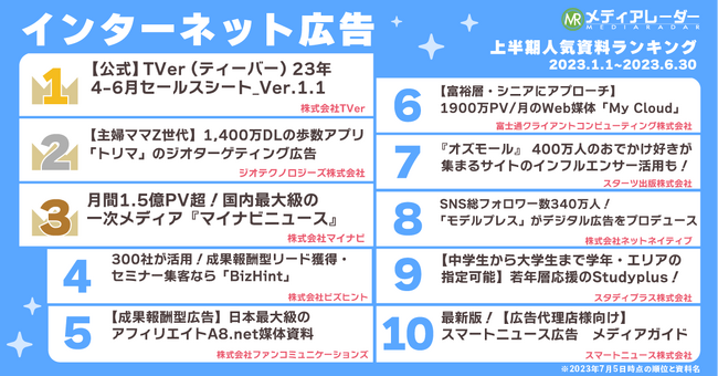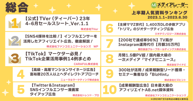 【2023年上半期】人気資料ランキングを発表!広告・マーケティングプラットフォーム「メディアレーダー」