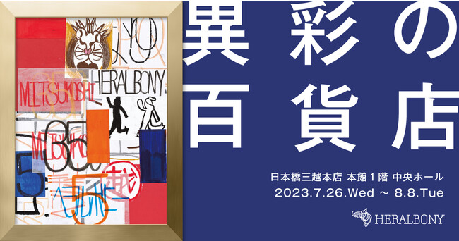 株式会社ヘラルボニー(以下、ヘラルボニー)が運営するアートライフスタイルブランド「HERALBONY」は、7月26日(水)~ 8月8日(火)の14日間、日本橋三越本店 本館1階 中央ホールにて、ポップアップストア「異彩の百貨店(いさいのひゃっかてん)」を開催します。三越が今年で創業350周年を迎えることを記念し、「三越創業350周年」「ヘラルボニー創業5周年」をテーマに作家・藤田望人氏がオリジナルアートを作成、メインビジュアルに起用いたしました。