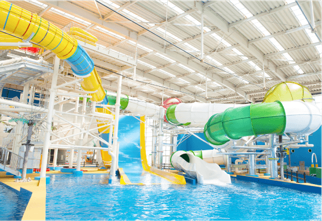 また、屋内エリアは円形プールのデザインを一新、他にも迫力満点のスライダーをはじめ、流水プールなど楽しみどころがいっぱい!全長150mのチューブを高速疾走しながら駆け抜けるスリルと興奮が味わえる「パニックトルネード」や、傾斜70度のスリルと、彩り豊かな光の感動が味わえる「続・ぞくぞくバーン」など、アトラクションが大人気。さらには小学6年生以下のお子さまと保護者の方が楽しめる、キッズエリアも設置。初めての水遊びにもぴったりです。