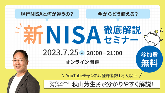 NISA(少額投資非課税制度)は、株式や投資信託などへの少額投資で発生した運用益が非課税となる制度です。2022年12月に公表された「令和5年度税制改正の大綱」において、2024年から制度が大きく変わることが示されました。この新しいNISAのポイントやこれまでのNISAとの違い、今後の対応策について、元マネーフォワードME事業責任者であり、YouTube登録者数1万人超のファイナンシャルプランナー・秋山芳生さんに解説いただきます。