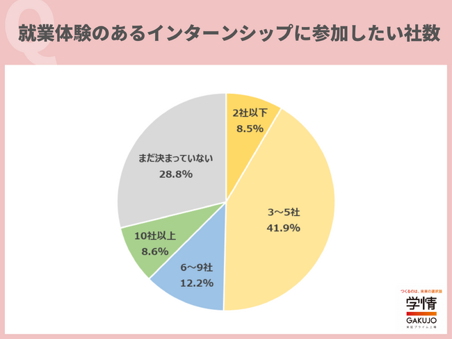 インターンシップへの参加を希望する社数は「3~5社」が最多。「夏休みは時間があるので、就業体験可能なプログラムに参加したい」の声