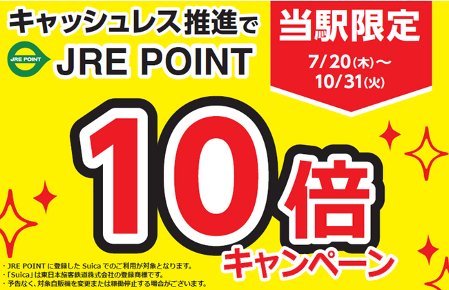 ※キャンペーン期間中、JRE POINT WEBサイトに登録したSuicaで、JRE POINT10倍