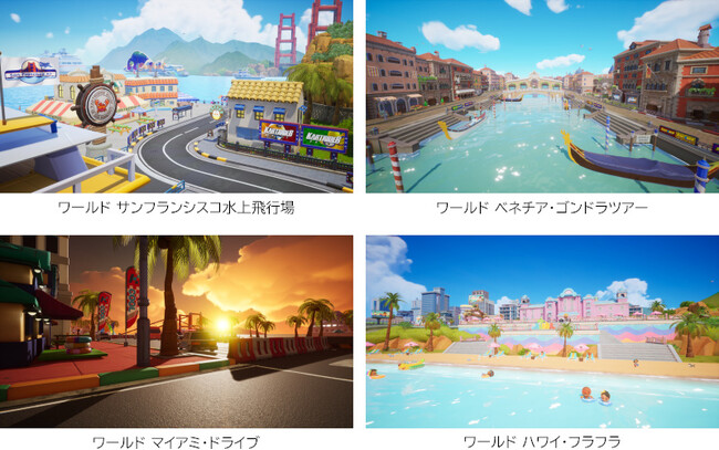 「ワールド」をテーマにした4つの新コース「ワールド サンフランシスコ水上飛行場」、「ワールド ベネチア・ゴンドラツアー」、「ワールド マイアミ・ドライブ」、「ワールド ハワイ・フラフラ」を追加いたしました。