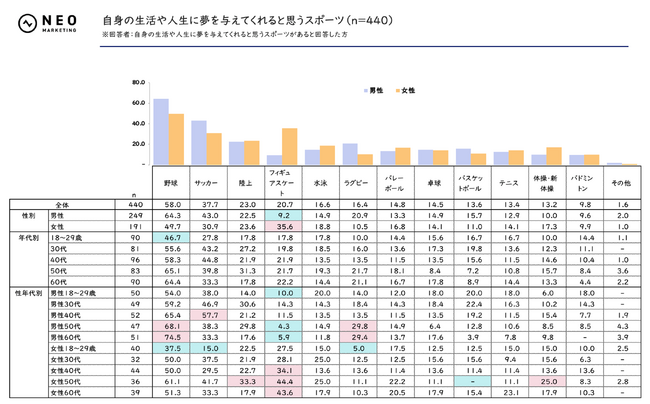 自身の生活や人生に夢を与えてくれると思うスポーツ(n=440)