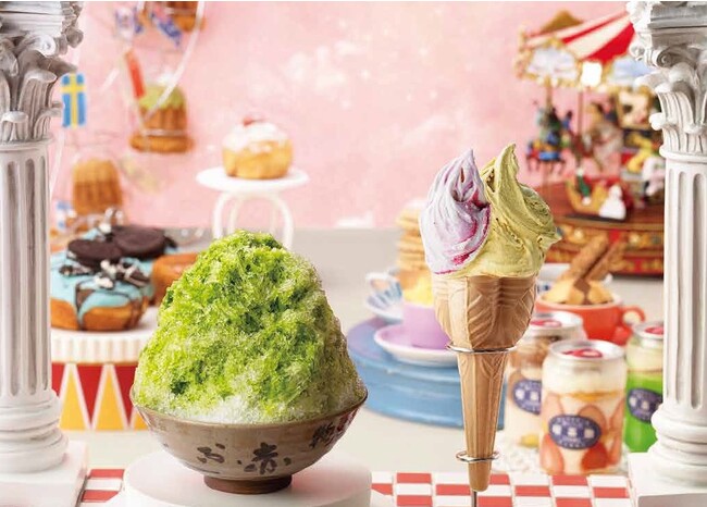 赤福の赤福氷や毎月一日に用意する「朔月餅」が登場するほか、宝石のような菓子や喫茶店メニューのケーキ缶などが登場。
