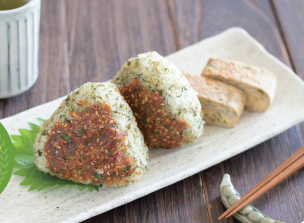 大葉みそ香る狭山茶葉にぎり厚焼き玉子添え