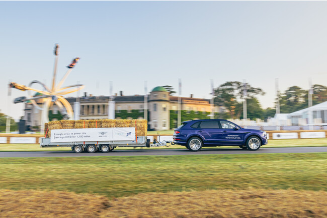 非公式でありながらも、1分21秒を記録したこの走行は、トレーラー牽引での最速タイムというグッドウッドの新記録を樹立しただけではなく、農業廃棄物の藁を原料とする第2世代の再生可能燃料を使用して行われました。ベントレーの持続可能な燃料への継続的な取り組みの一環として、今後4日間、フェスティバル・オブ・スピードのヒルクライムで走行するすべての最新型ベントレーは再生可能燃料を使用し、これはウェル・トゥ・ホイールベースで85パーセントの二酸化炭素排出量削減を意味します。