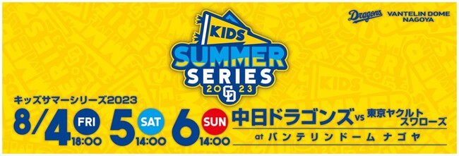 8月4日(金)~6日(日)にバンテリンドーム ナゴヤで開催する中日ドラゴンズvs東京ヤクルトスワローズは「キッズサマーシリーズ 2023」として子どもが楽しめるイベントを多数実施します。