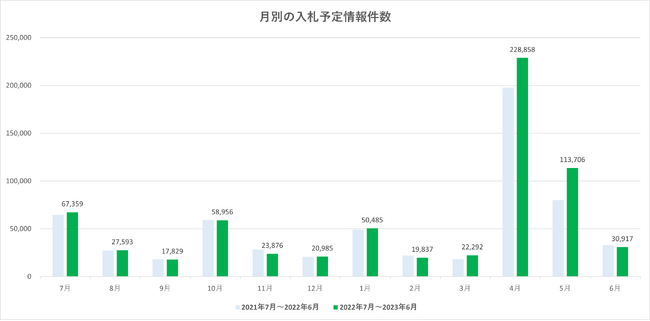 1か月間の入札・公募件数が11万件を超える。入札王の月次レポート(2023年6月分)
