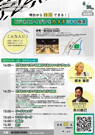 熊本市― 2023年6月23日キャンプ女子株式会社は、熊本市の創業支援施設XOSS POINT.が主催する『ビジネスアイデアをカタチにする極意』セミナーに、代表の橋本華恋が登壇いたしました。