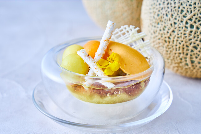 ●メインデザート:メロンのコンポジションパルフェ ココナッツとエルダーフラワーの香り