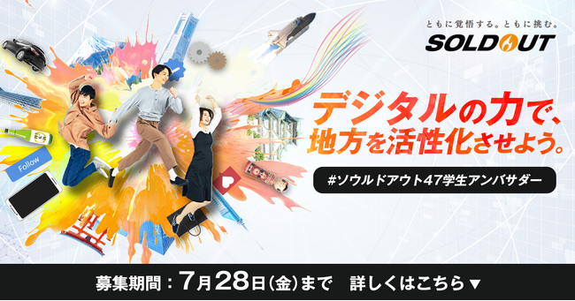 地方を含む日本全国の中小・ベンチャー企業の成長支援をデジタルマーケティング領域で展開するソウルドアウト株式会社(本社:東京都文京区 代表取締役社長CEO兼CCO:荒波 修、以下「ソウルドアウト」)は、2023年7月より、全国47都道府県地方アンバサダーの募集を開始しました。全国の志ある挑戦者や企業を応援するソウルドアウトの想いに賛同する大学生(オンラインで参加できるので地方在住でも応募可能)を募集いたします。