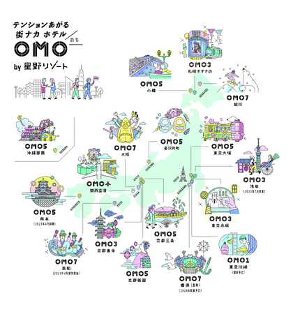 「OMO」は星野リゾートが全国に展開する「テンションあがる『街ナカ』ホテル」。地域と一体となって街を楽しみ尽くす旅を追求しています。全てのOMOで、街歩きをサポートするサービス「Go-KINJO」を展開。全国各地の14施設から都市観光の楽しさを発信していきます(2023年4月時点)。