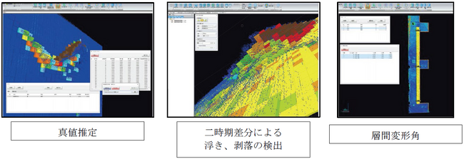 アイサンテクノロジーでは、当社製品である大規模点群処理ツール「WingEarth」を用いて、本手引きに沿った作業を速やかに行えるよう、国立研究開発法人 建築研究所「点群データを用いた被災建物の損傷 評価手法の普及に資する検討」に係る共同研究(以下、本共同研究)に2022年度より参画し、真値推定、浮き剝落検出、層間変形角算出等の本共同研究成果に基づいた機能を一部搭載して、2023年3月に「WingEarth建築物損傷評価オプション」の先行リリースを行いました。