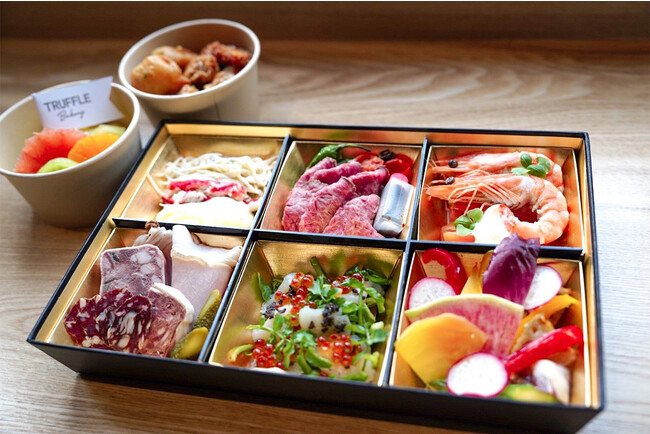エスコンフィールドHOKKAIDO(エスコンフィールド)内、tower eleven hotel(タワー・イレブン・ホテル)では、Fビレッジ沢エリアに店舗を構える「TruffleBAKERY BAKERY & RESTAURANT」とコラボレーションしたオリジナルメニューを提供しております。ホテルフロントで受け取るデリバリーサービスとして利用可能で、宿泊予約とともに予め注文することで出来立ての食事をお召し上がりいただけます。
