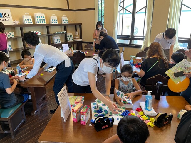 2.心をこめて贈り物を包もう(包装紙でお菓子を包んでのし紙を掛ける体験)