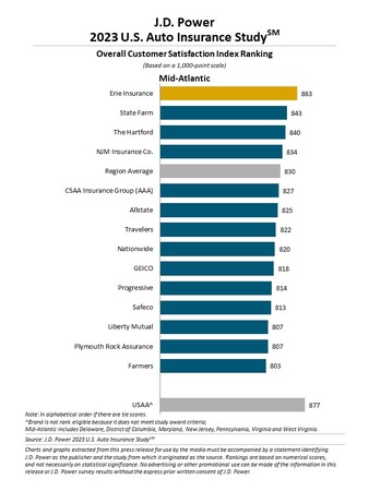 【大西洋側中部】Erie Insurance(エリー)(863 ポイント、2年連続の総合満足度第1位)
