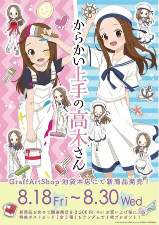 “ペンキ遊び”&“マリンセーラー”をテーマにした描き下ろし&GraffArtイラストの新商品は、ここでしか手に入らない貴重なアイテムばかり。夏らしさ満載の高木さんをお手元で眺め、作中の名シーンを思い出しながら“ニヤキュン”しちゃいましょう!