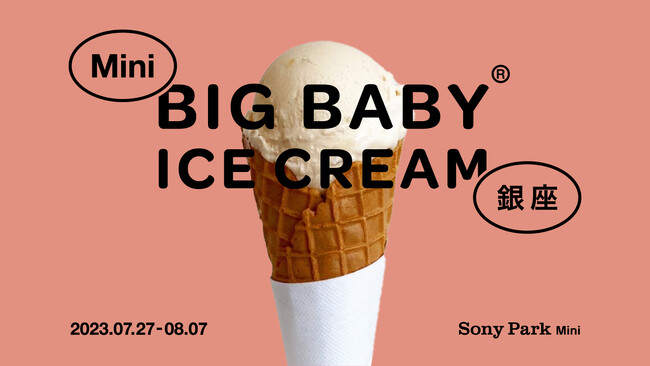 その第2弾では、東急東横線沿線にある新丸子(神奈川県川崎市)の街で行列のできる話題のアイスクリームショップ「BIG BABY ICE CREAM」とコラボレーションし、真夏の12日間限定でSony Park Miniだけのオリジナルフレーバーのアイスクリームが楽しめるプログラム「Mini BIG BABY ICE CREAM 銀座」を開催します。開催期間は2023年7月27日(木)~8月7日(月)です。