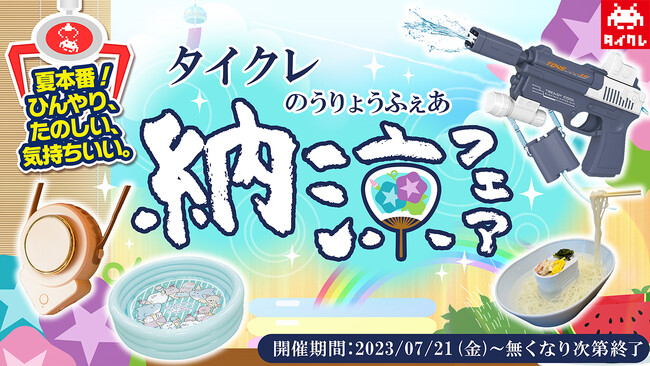 株式会社タイトー(本社:東京都新宿区)が運営するいつでもどこでもクレーンゲームが楽しめる「タイトーオンラインクレーン(以下タイクレ)」では、「真夏のアツさを吹き飛ばせ!」をコンセプトに『納涼フェア』を2023年7月21日(金)より開催いたします。