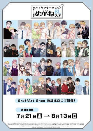 株式会社A3(本社:東京都豊島区、代表取締役:小澤隆史)は、出版社10社の垣根を超えた“初の試み”となる「ワル/ヤンキーのギャップ萌えめがねBLフェア」を2023年7月21日(金)よりGraffArt Shop池袋本店および通販サイト(eeo Store)にて開催いたします。