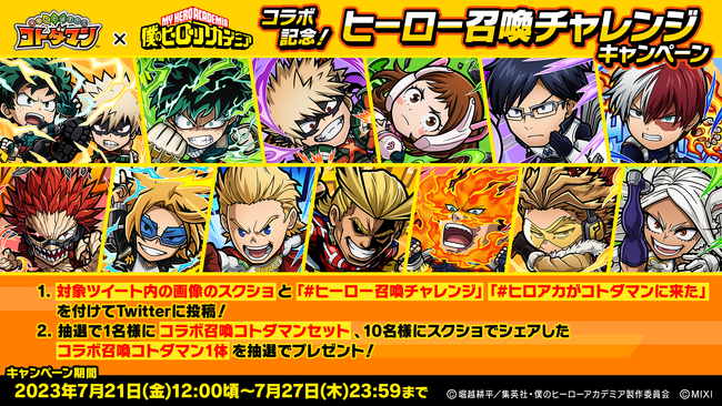 そのほか、コラボ開催を記念してTVアニメ『僕のヒーローアカデミア』コラボ召喚コトダマンセットが当たるTwitterキャンペーンを開催します。