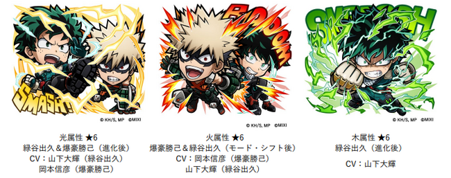 コラボ召喚に登場する「緑谷出久&爆豪勝己」は、進化後「モード・シフト」が搭載され、編成画面で自由に「緑谷出久&爆豪勝己」または「爆豪勝己&緑谷出久」に切り替えることができます。そのほか、「麗日お茶子」「飯田天哉」「轟焦凍」などのキャラクターがコラボ召喚に登場します。